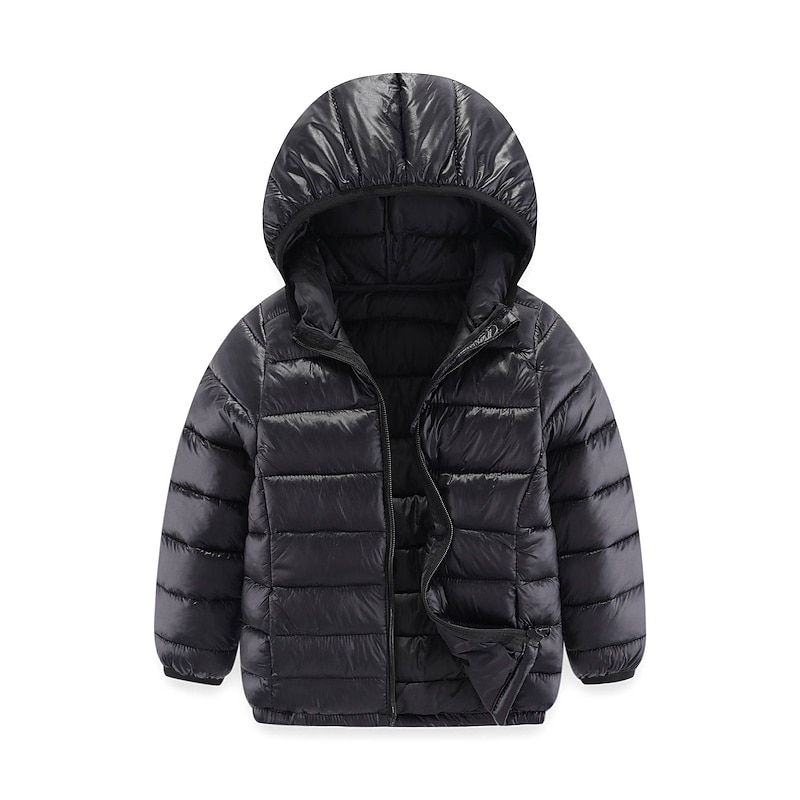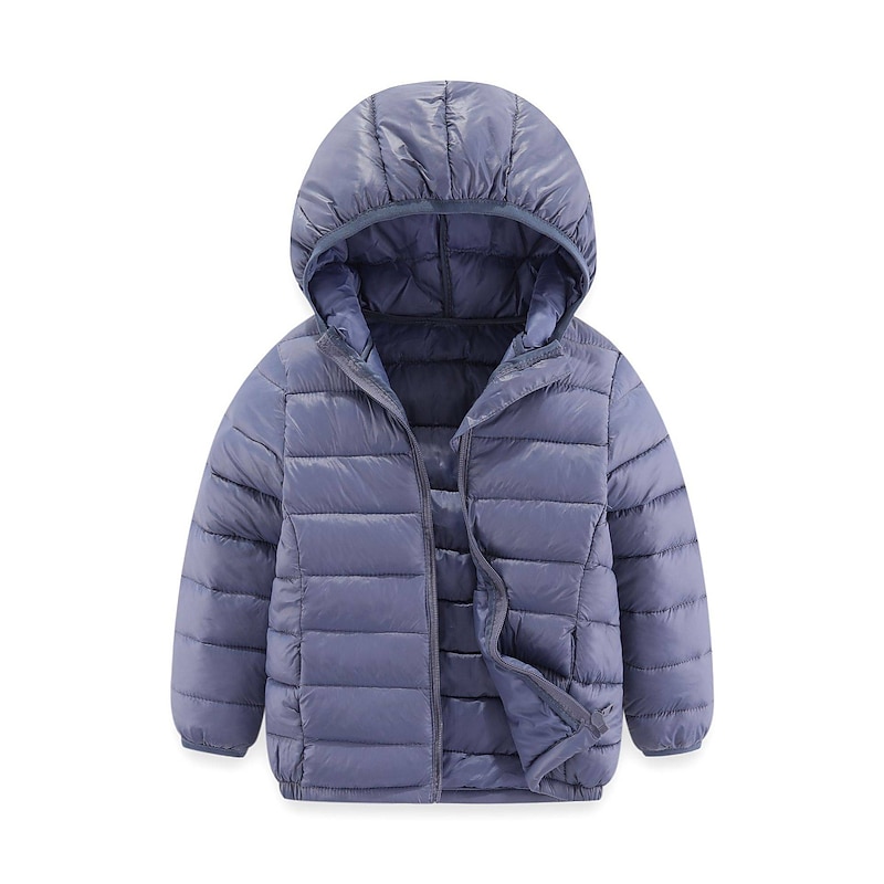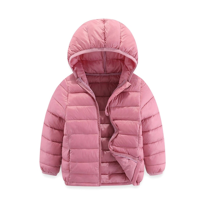 HOT ! Kids Girls' Puffer Jacket Solid Color Active School Coat Outerwear 2-12 Years Spring Ash Taro purple Classic black