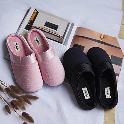 Floopi Women’s Memory Foam Slippers Deluxe Clog Scuff/Mule House Slip-Ons for Indoor & Outdoor Use| toasty & Fuzzy w/Velour Fur Lining, Quilted Collar Slipper & Anti-Skid Hard Sole