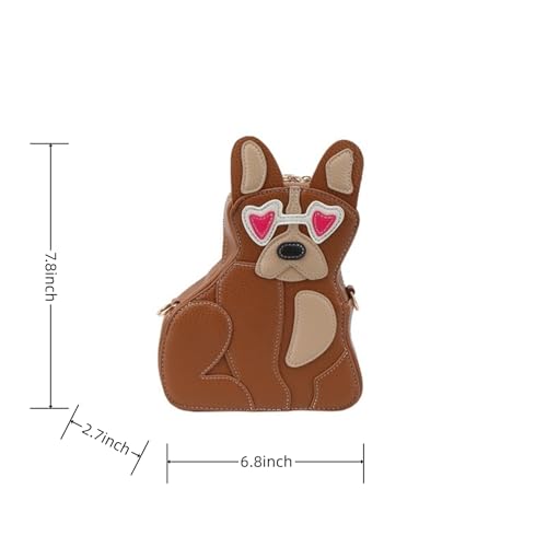 • Dimensions: This cute dog purse size is about 6.9* 2.8* 7.9 (L*W*H) inches, removable and adjustable shoulder strap length is about 23.5 in, it can hold cellphone, lipsticks, keys, cards, and so on,this mini size bag recommend for lovely you when you out