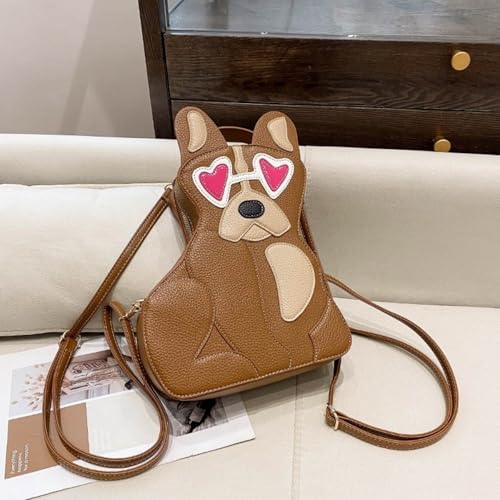 IAMUHI Women Cute Patchwork Dog Puppy Shaped Crossbody Shoulder Bag PU Leather Handbag Unique Novelty Animal Purse 1