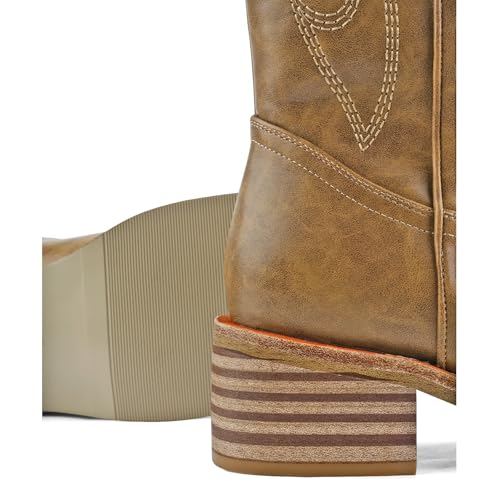 Cowboy Boots Knee High Women Western Embroidered Square Toe Wide Calf Chunky Heel Chunky Heel Retro Classic Tall Boot Pull on for Ladies Fall Winter 5