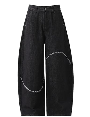More information about Men Hip Hop Baggy Jeans Wide Leg Black Jeans Vintage Skateboard Pants Loose Fit Straight Leg Skater Y2k Denim Pants