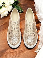 More information about Gold Glitter Lace-Up Sneakers – Stylish and Comfortable Shoes for Casual Outings or Wedding After-Parties