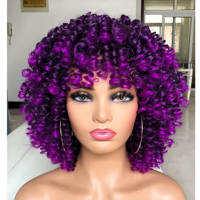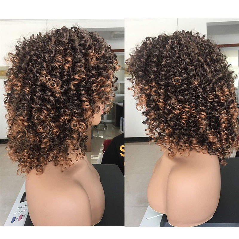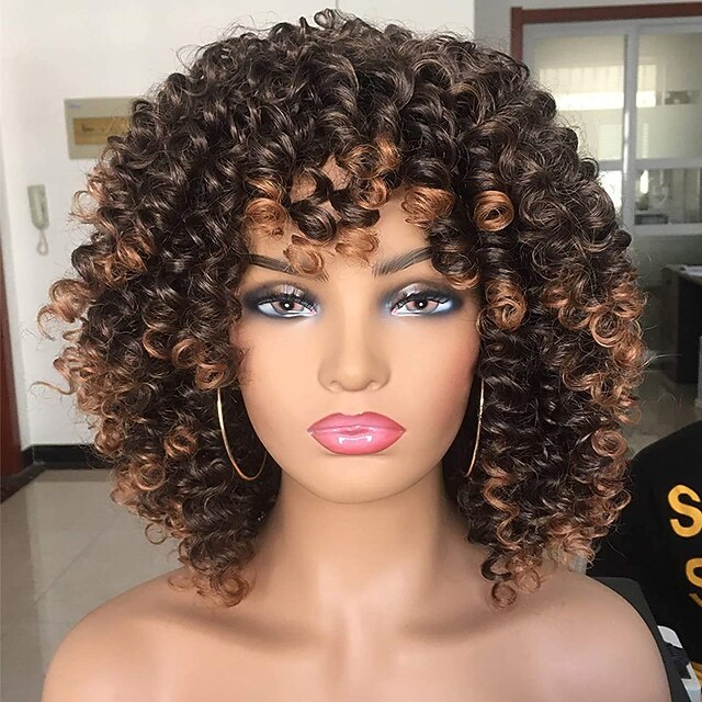 $28.99 - Short Curly Wig for Black Women with Bangs Big Bouncy Fluffy Kinky Curly Wig Heat Resist Soft Synthetic 2Tone Ombre Darkest Brown Short Curly Afro Wig 2025. Shop for cheap Black & African Wigs online? Buy at lightinthebox.com on sale today!