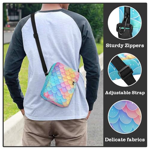 Rainbow Fish Scale Colorful small messenger bag for women men shoulder bag Women's Purses Adjustable Strap for Shopping Travel 6