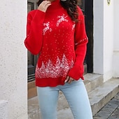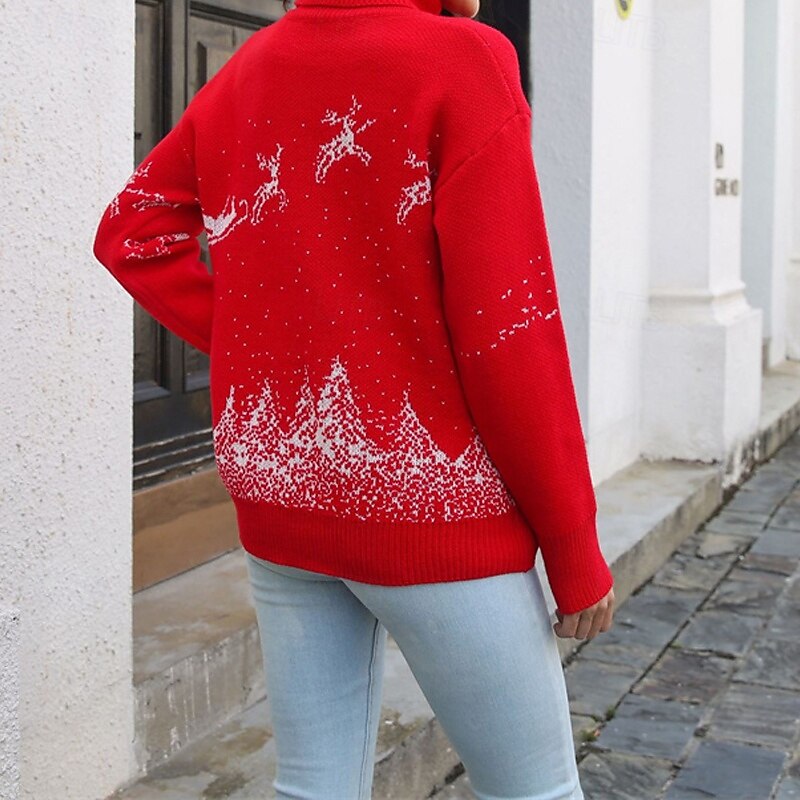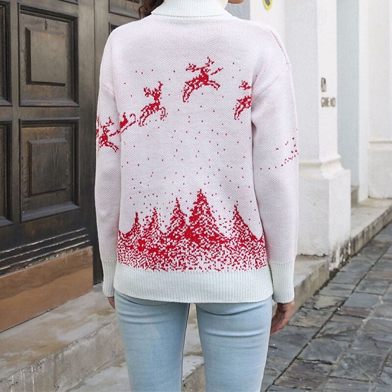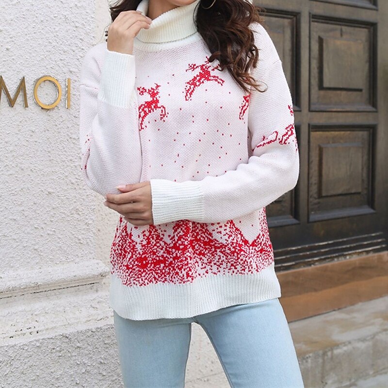 More information about Women's Pullover Casual Reindeer Chunky Turtleneck Knitted Long Sleeve Regular Tops Knit Christmas Daily Holiday White Red Fall Winter