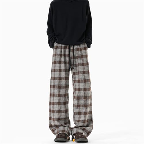 HOT ! Seidarise Men's Plaid Wide - Leg Pants, Drawstring Waist, Loose Fit for Casual & Streetwear