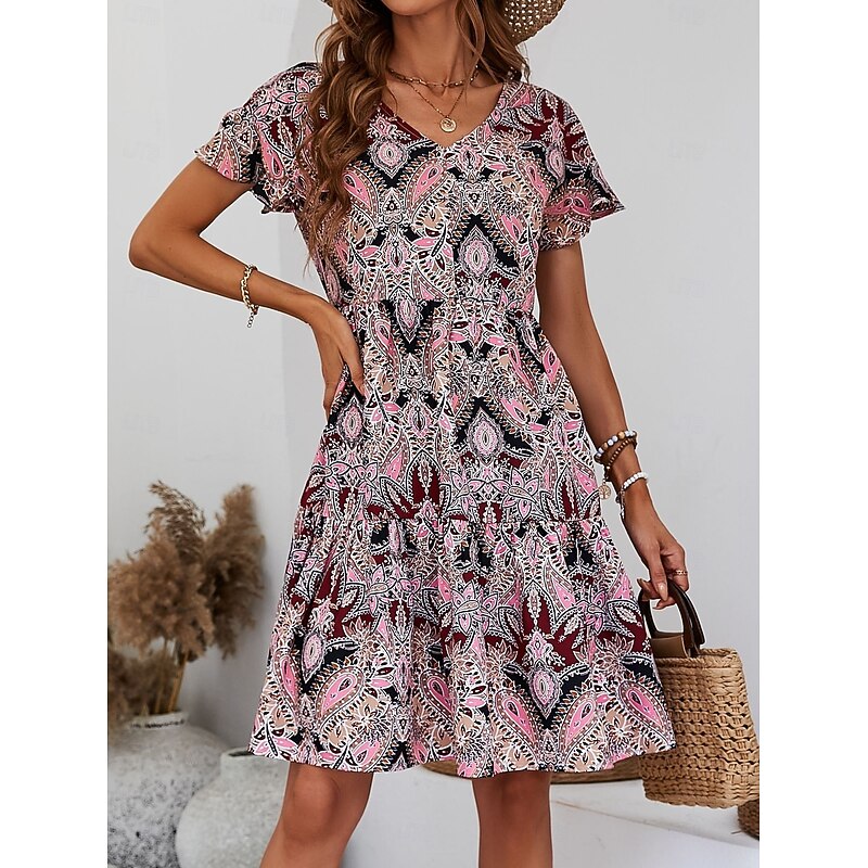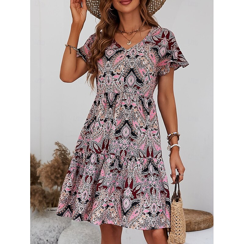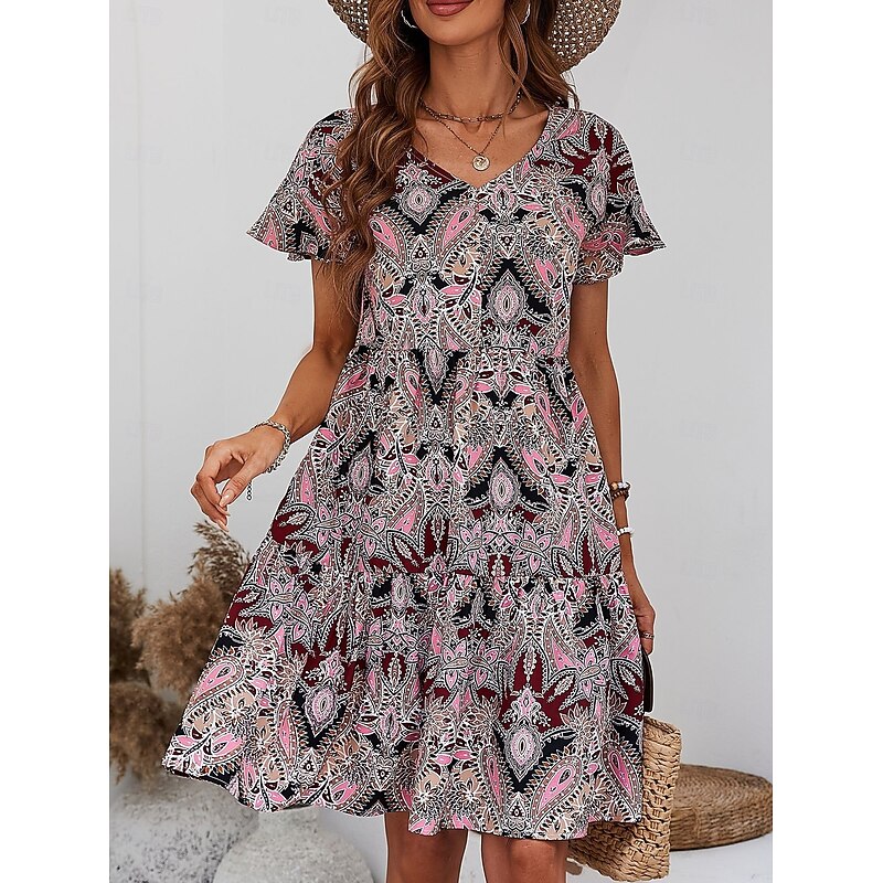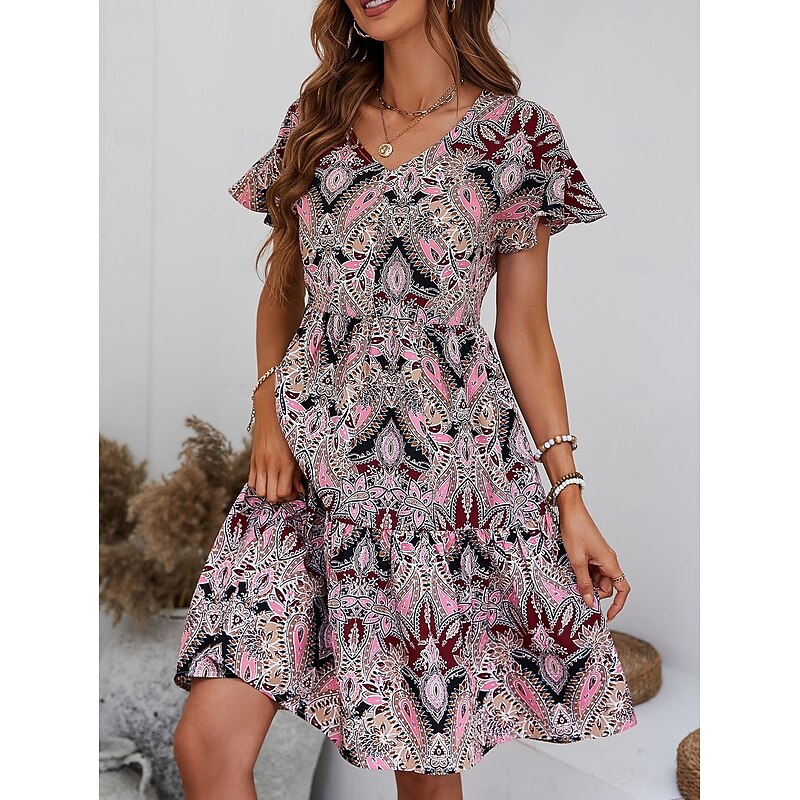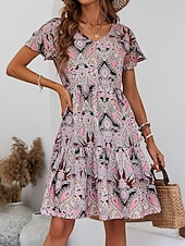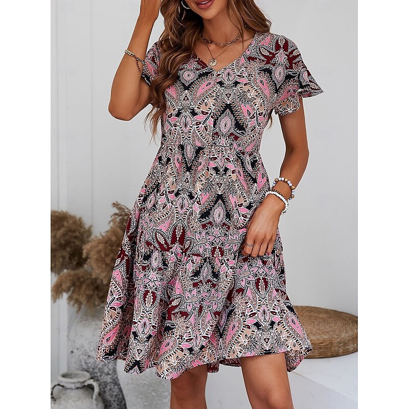 More information about Women's Mini Dress Petite Dress Casual Dress A Line Dress Boho Dress Vintage Stylish Casual Vacation Daily Regular Fit Paisley Short Sleeve V Neck Black Wine Spring Fall