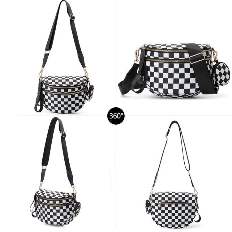 HOT ! Checkered Crossbody Bag Shoulder Purse Nylon Bum Bags for Women Checkered Sling Hobo Handbag Fanny Packs Crossbody Tote Purse