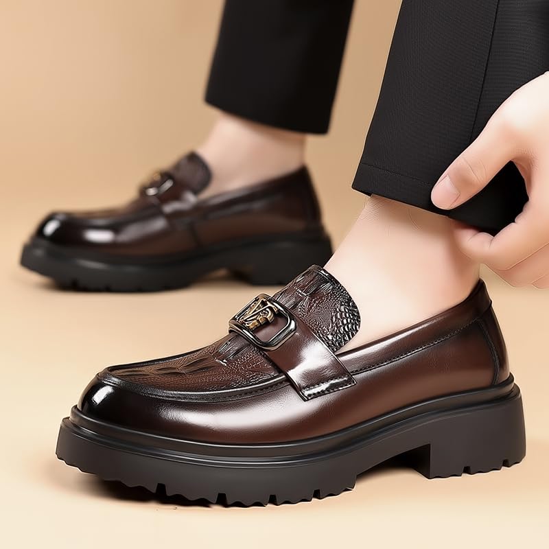 More information about Men's Luxury Genuine Leather Thick-Soled Penny Loafers Fashionable Round Toe Thick Heels Suitable for Business Formal Shoes Classic Non-Slip Party Wedding Dance