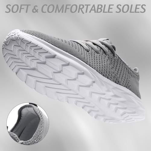 HOT ! Womens Slip On Running Shoes Lightweight Tennis Walking Shoes Breathable Mesh Gym Workout Shoes Fashion Sneakers Light Gray 10