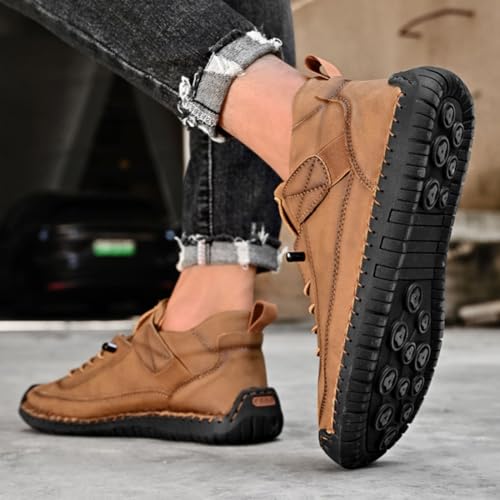 Beelovy Shoes for Men, Easestep Adjustable Leather Sneakers Soft Comfort Orthopedic Support, Slip On Loafers 7