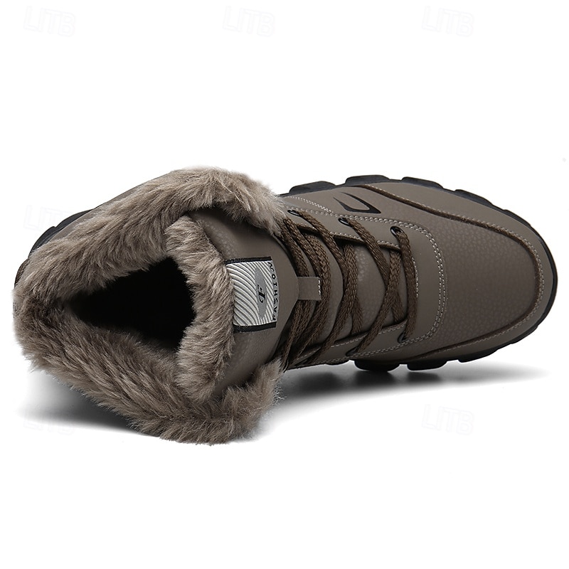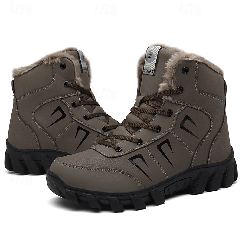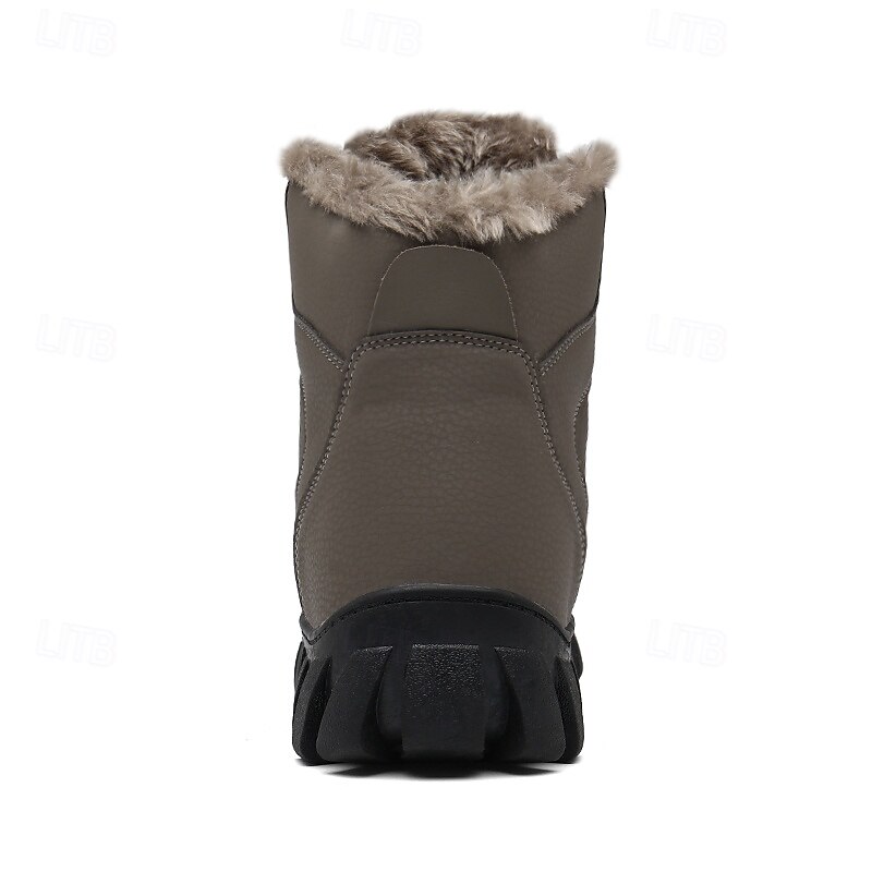 Men's Khaki Winter Hiking Boots – Fur-Lined Warm Outdoor Boots with Durable Non-Slip Sole for Cold Weather