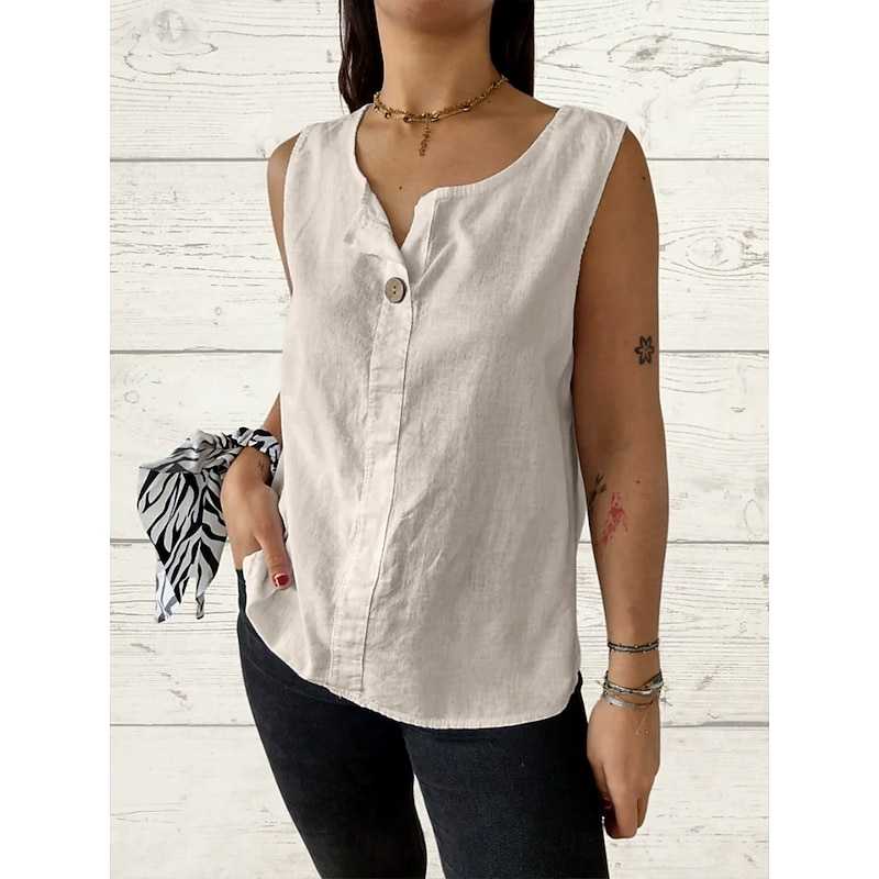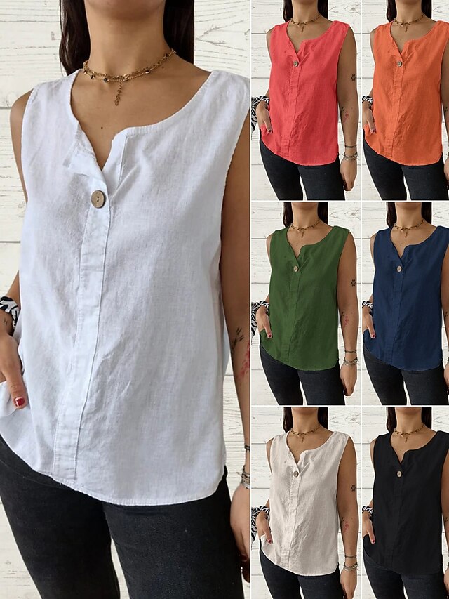 Women's Camisole Tank Top Solid Color Plain Basic Sleeveless V Neck Regular Tops Holiday Buttons White Army Green Red Beige Summer Spring