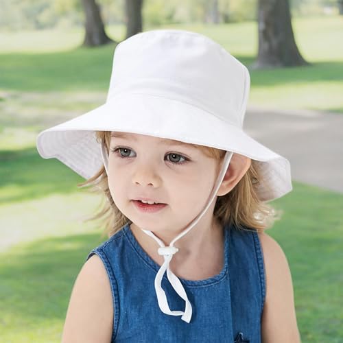 • ⇒ Unique Design: Summer beach hat with straps and adjustable toggles on the back to ensure the baby sun hat stays in place without moving. The hat features an adjustable headband and chin strap for an easy fit for the best fit, and can be tightened or loosened as needed for great convenience.