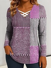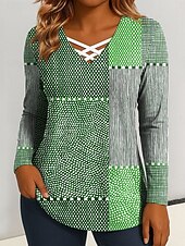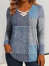 More information about Women's T Shirt Graphic Geometric Vintage Stylish Classic Long Sleeve V Neck Regular Tops Daily Cut Out Print Blue Purple Green Spring Fall