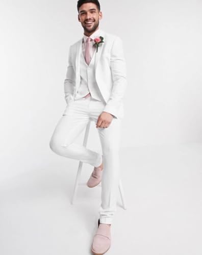 Yanlu 3-Piece Suits for Men Wedding Tuxedos Ivory Groomsmen Suits 3 Pieces Prom Blazer Vest Pant Slim Fit-4438