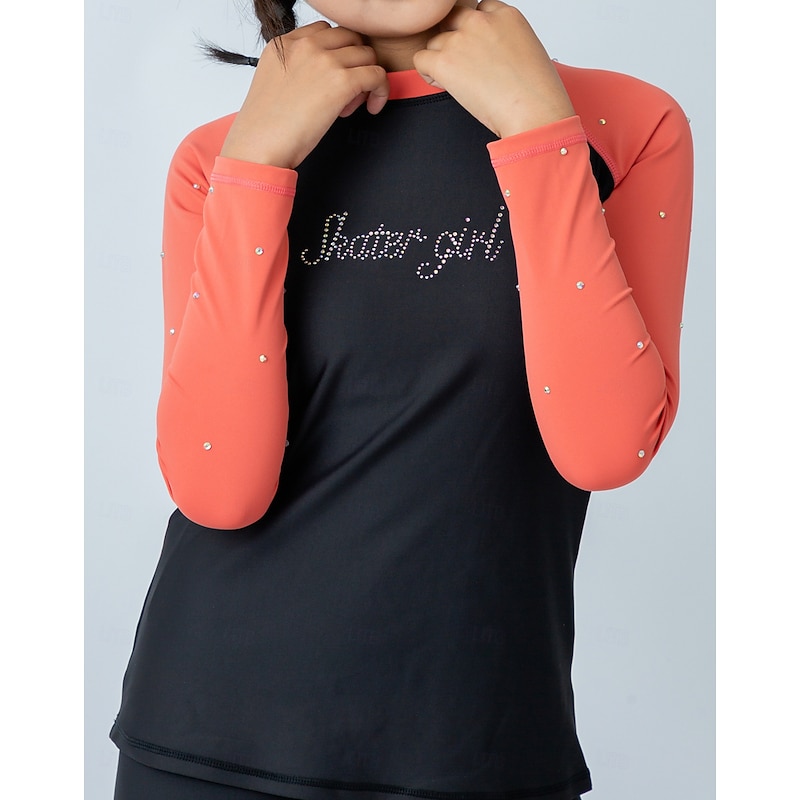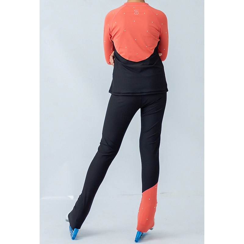 More information about Figure Skating Pants Figure Skating Jacket with Pants Women's Girls' Ice Skating Jacket Tights Outfits Black / Orange Black Green Patchwork Thumbhole Spandex Stretchy Training Practice Professional