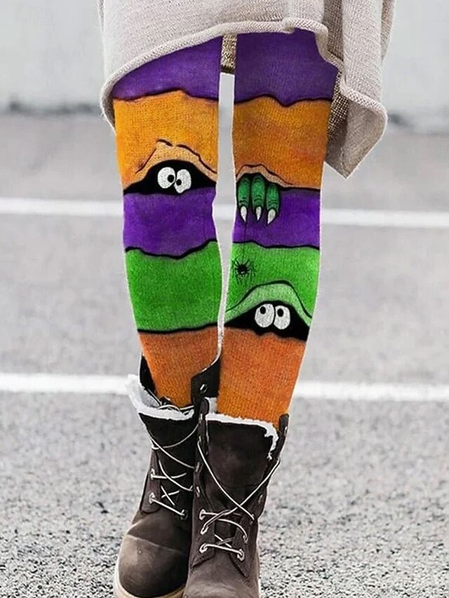 More information about Women's Leggings Vacation Vintage Fashion Ankle-Length High WaistPantsHalloween Graphic Monster Printing Thermal Warm Soft Breathable Stretchy Formal Outdoor Vacation Black Orange Green Beige Spring