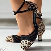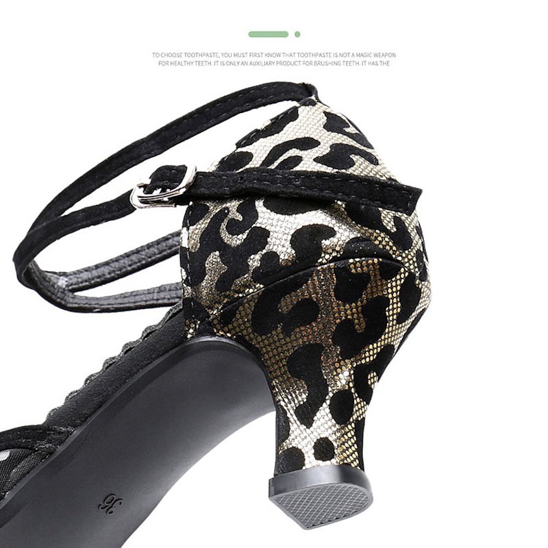 Women's Leopard Print Dance Shoes with Mesh Straps – Rubber Sole, Comfortable and Stylish for Ballroom and Latin Dancing 19
