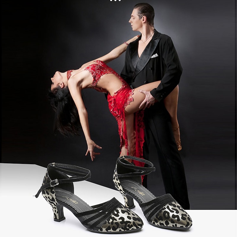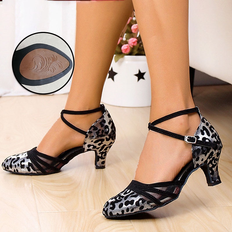 Women's Leopard Print Dance Shoes with Mesh Straps – Rubber Sole, Comfortable and Stylish for Ballroom and Latin Dancing 1