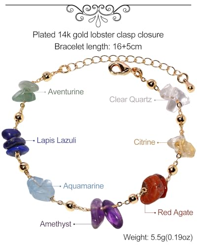7 Chakra Reiki Gemstones Plated 14k Gold Chain Bracelets for Women Meditation Colorful Crystal Chips Beaded Bracelets (6″-8″) 4