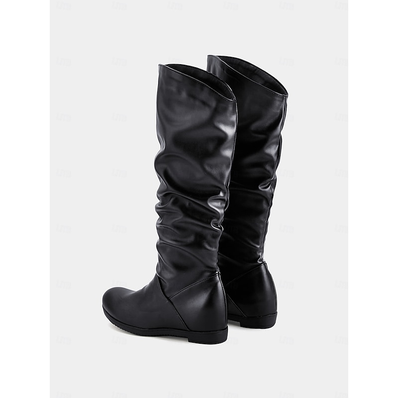 Women's Black Faux Leather Slouchy Knee-High Boots – Stylish and Comfortable Flat Boots for Everyday Wear and Casual Outings 14