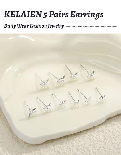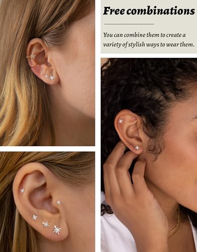 • Earring Sets for Multiple Piercings: 5 Pairs dainty silver star stud earrings one set,include 3 different sizes, 2mm(0.08in), 3mm(0.12in), 4mm(0.16in). This classic studs that can be worn single or paired with other hypoallergenic earrings to meet your DIY needs and give you a fresh look every day