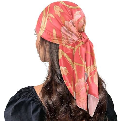 More information about Gold Peach Floral square silk scarf lightweight scarf shawl for women for Gift 35x35 bufandas para mujer