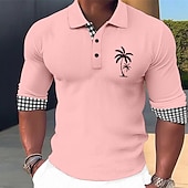 Kentucky Derby Men's Plaid Palm Tree Hawaiian Polo Shirts Golf Shirt Long Sleeve Polo Shirts Collared Shirts Casual Beach Wear Vacation Wear Tropical Wear Party Outfits 3D Print Buttons White Pink 6