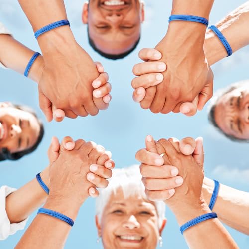 100 Pcs Colon Cancer Awareness Bracelets Bulk Blue Mental Health Adjustable Bracelets Inspirational Prostate Colon Cancer Gifts for Women Men Social Charity Event 5