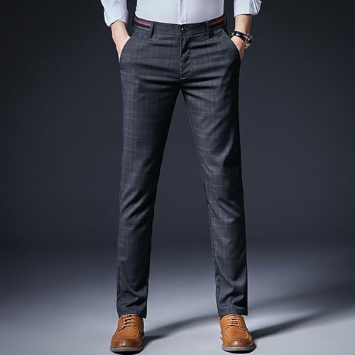 HOT ! Mens Dress Plaid Slim Fit Suit Pants Slim Fit Slacks Stretch Tapered Trousers Skinny Fit Stretch Business Dress Pant