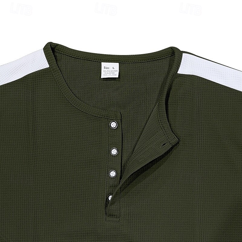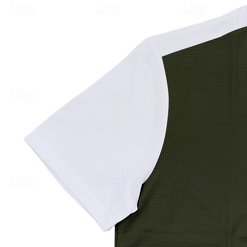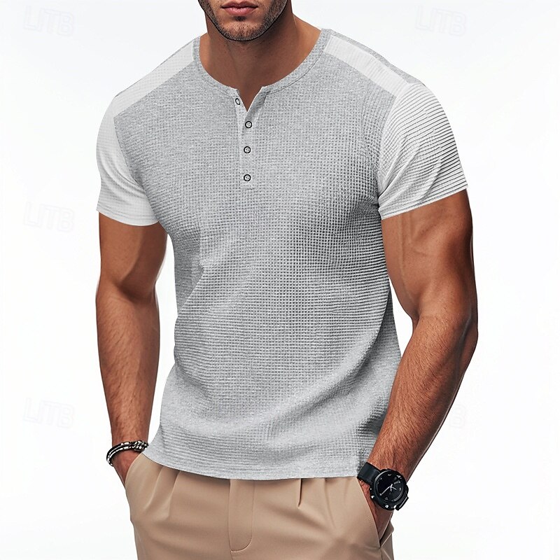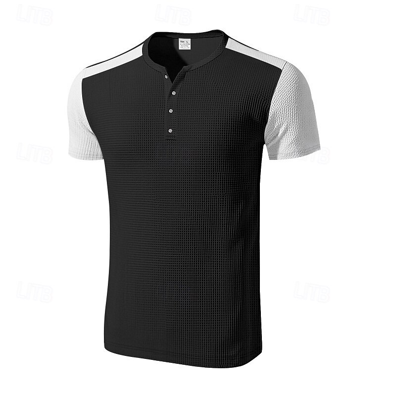 Men's Waffle T-shirt Waffle Henley Shirt Color Block Tee Short Sleeve Henley Summer Spring Color Block Vintage Style Color Block Casual Black White Gray Top Tee for Men 5