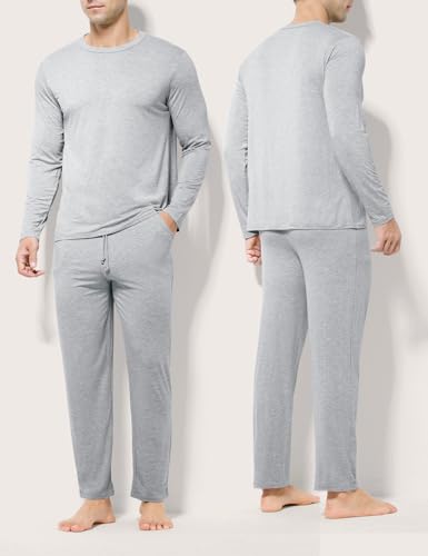 HOT ! Casey Kevin Mens Pajamas Set Long Sleeve Sleepwear Comfy Breathable Loungewear with Pockets Soft Top & Pants Pjs for Men