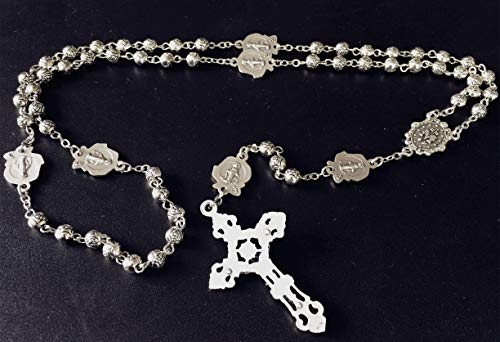 • Silver rose beads 6mm, cross size : 1.8" (4.5 cm) in Hight ,Rosary center medal : 1.6cm FROM ITALY