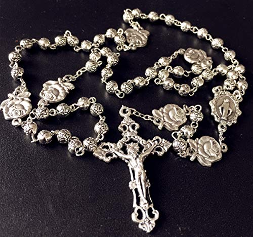 More information about elegantmedical HANDMADE Silver rose beads Catholic 5 DECADE Rosary case Cross Gift Box Italy crucifix cross