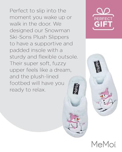 MeMoi Women's Snowman Ski-Sons Hard Bottom Plush Slippers 6