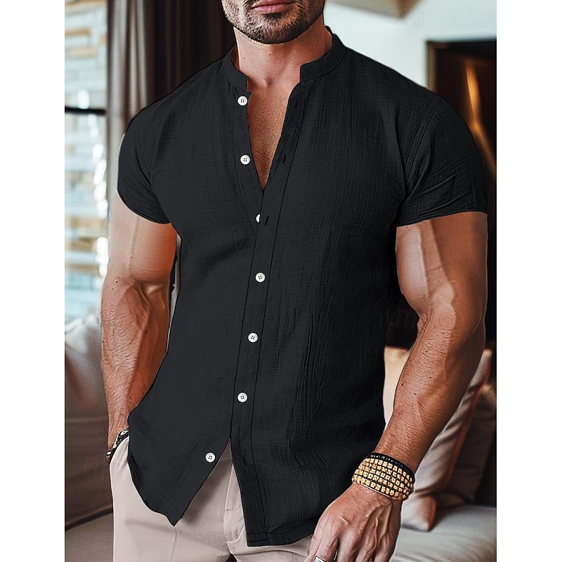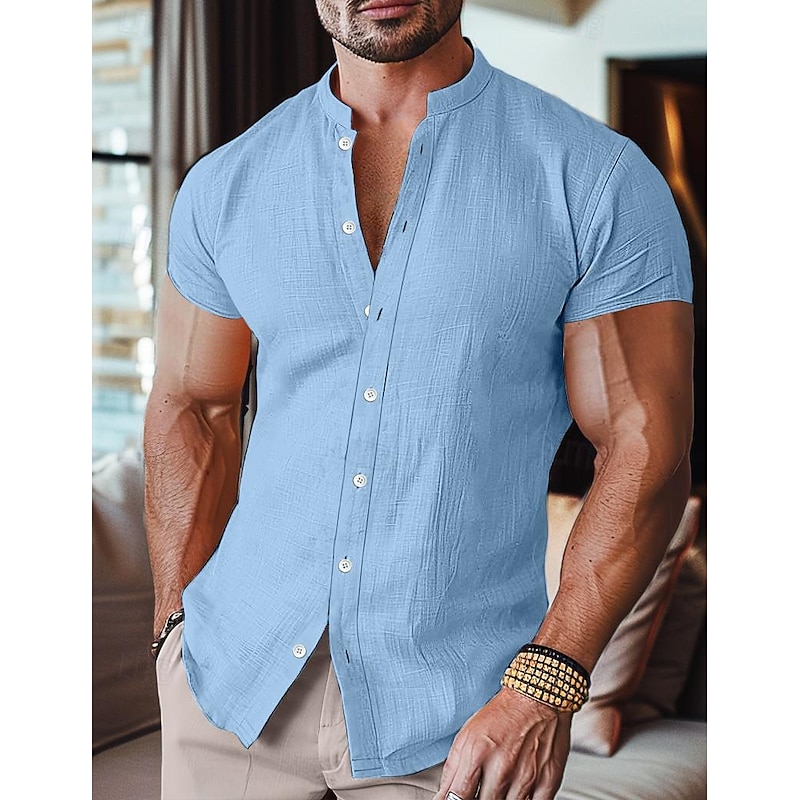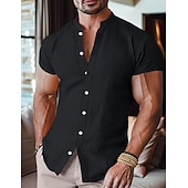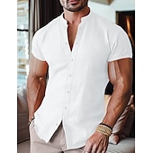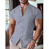 More information about Men's Shirt Linen Shirt Band Collar Shirt Summer Shirt Beach Wear Summer Hawaiian Shirt Solid Color Street Daily Black White Blue Orange Short Sleeve Band Collar Spring & Summer Clothing Apparel
