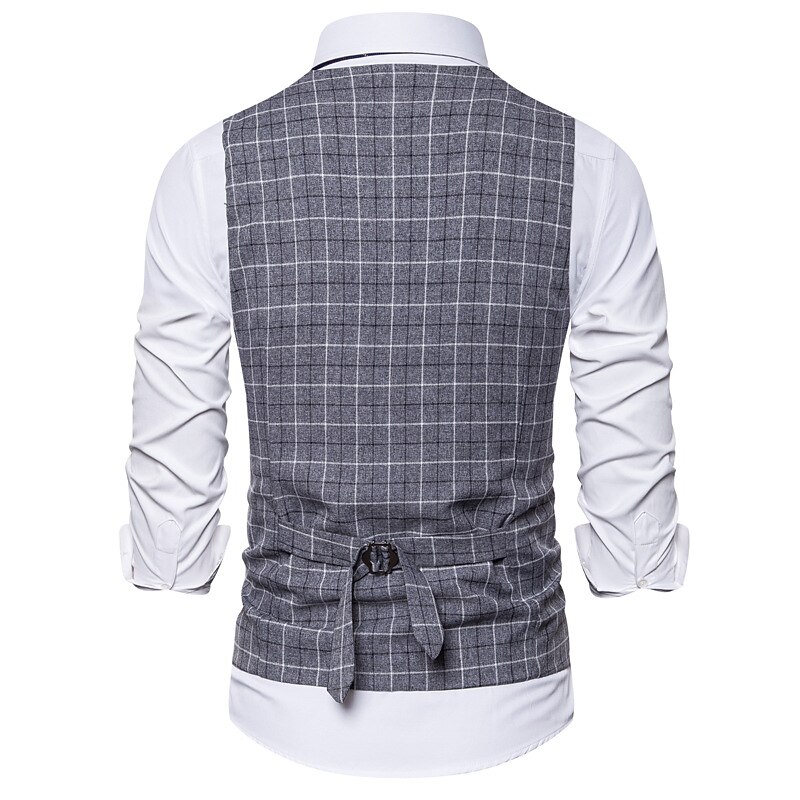 Highlights Product Selling Points: 1. Sleeveless design for added comfort and freedom of movement. 2. Business style adds a touch of sophistication and professionalism. 3. Plaid pattern for a trendy and fashionable look. 4. V neck neckline enhances the femininity and flatters the figure.