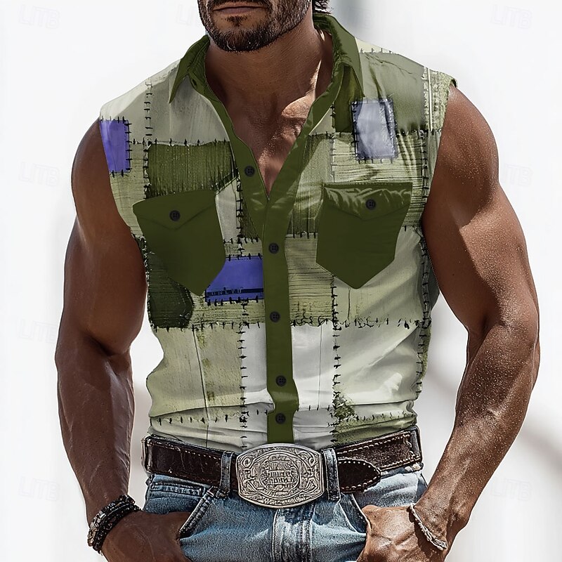 This Men's Color Block Denim-like Shirt Western Shirt Cowboy Shirt Sleeveless Western Style Outdoor Work Causal Summer Spring Turndown 3D Print Front Two Pockets Button Up Shirts Blue Brown Green combines elegant design with practical functionality. Every detail has been carefully considered to ensure you get the ultimate possible experience. The first-class construction means this product will serve you well for years to come.