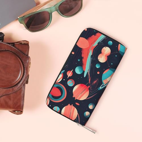 Space Planets Print Womens Wallet, Ladies Credit Card Holder, Phone Wallet Purses, Long Clutch Hand Bag 1