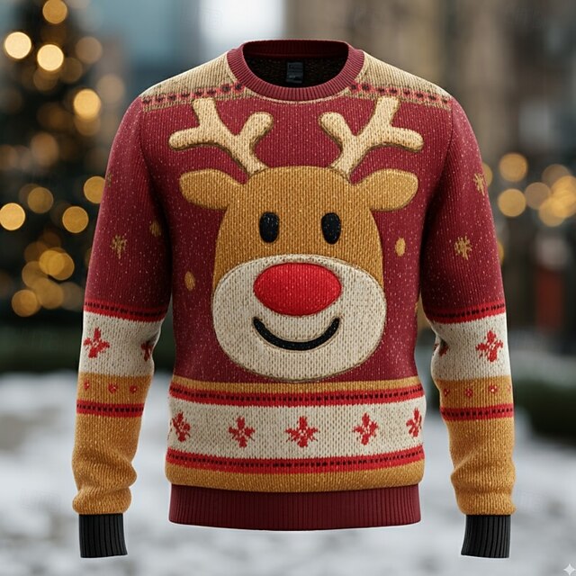More information about Ugly Christmas Sweater Men's Elk 3D Print Snowflake Pullover Sweater Jumper Knitwear Crewneck Casual Vacation Daily Festival Keep Warm Long Sleeve Spring Fall Winter Black Red Green