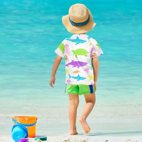 Fluorescent Green Yellow Sea Animal Turtle Whale Seahorse Short Sleeve Kids Bathing Suits Boys Swimsuits for Little Girls Kids Rash Guard for 3-12 Years Traje de bano para nino 2
