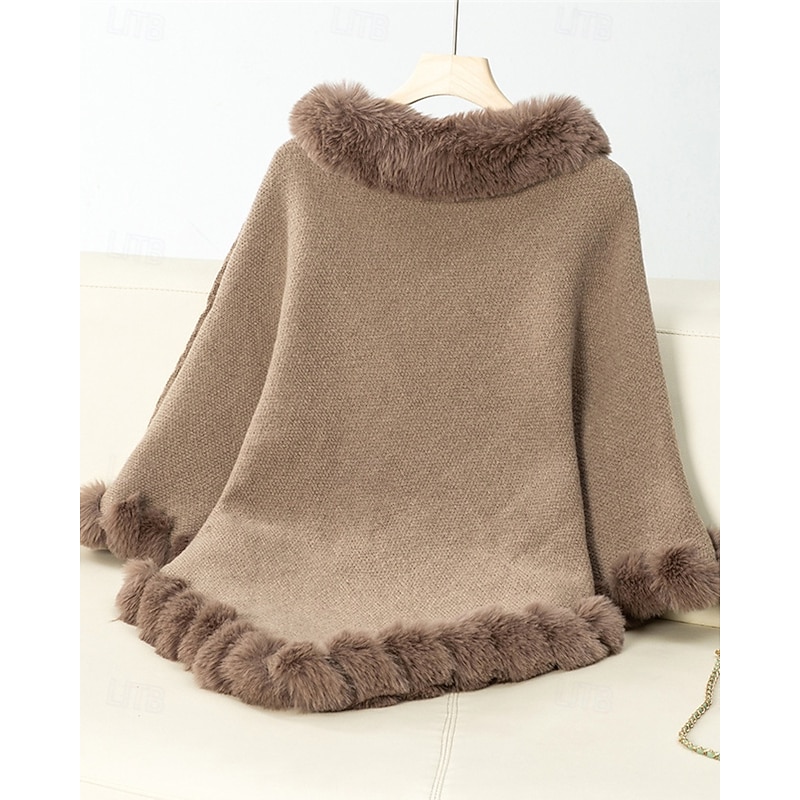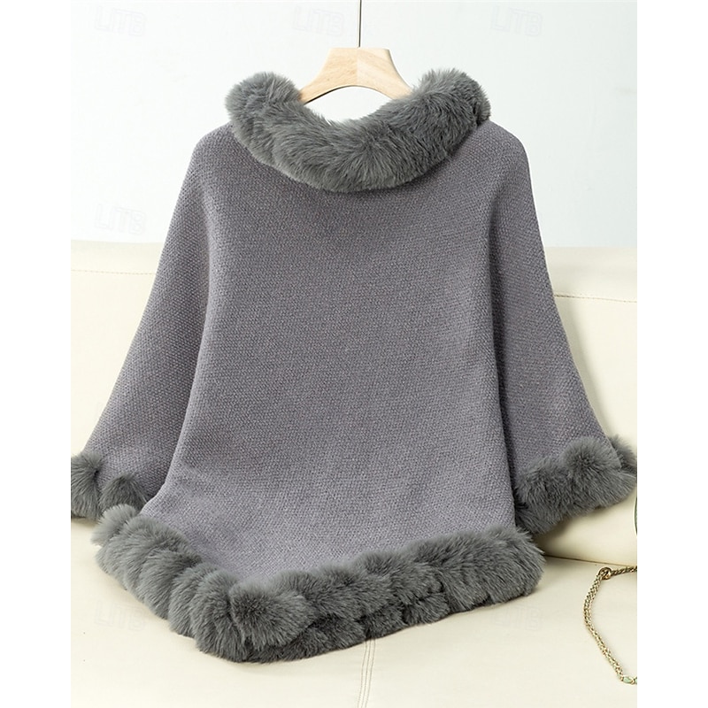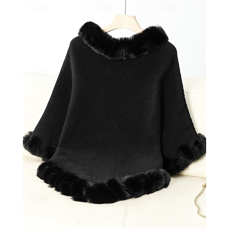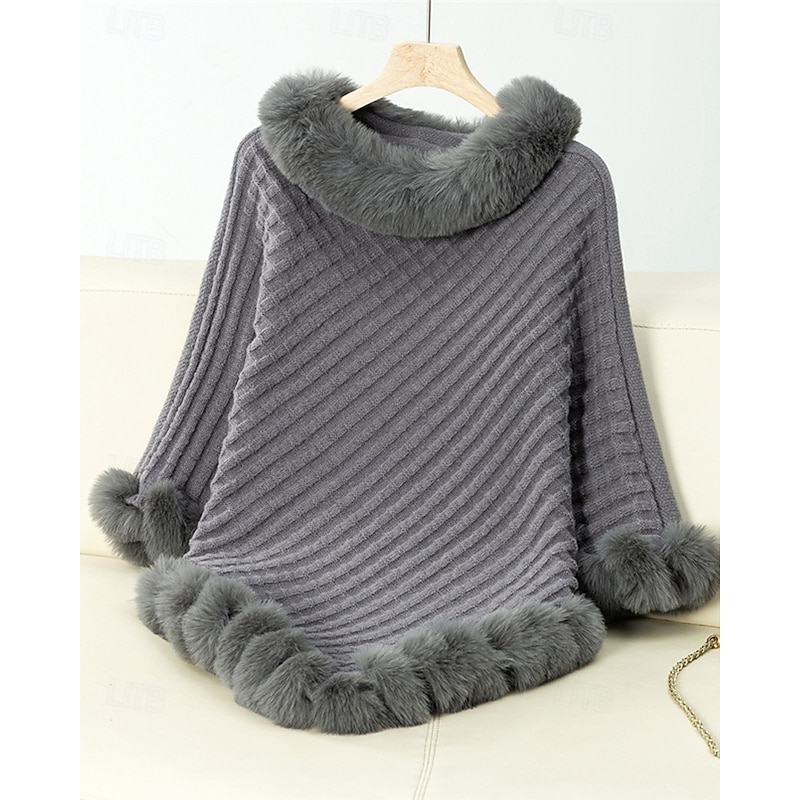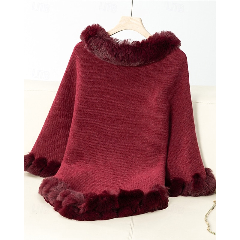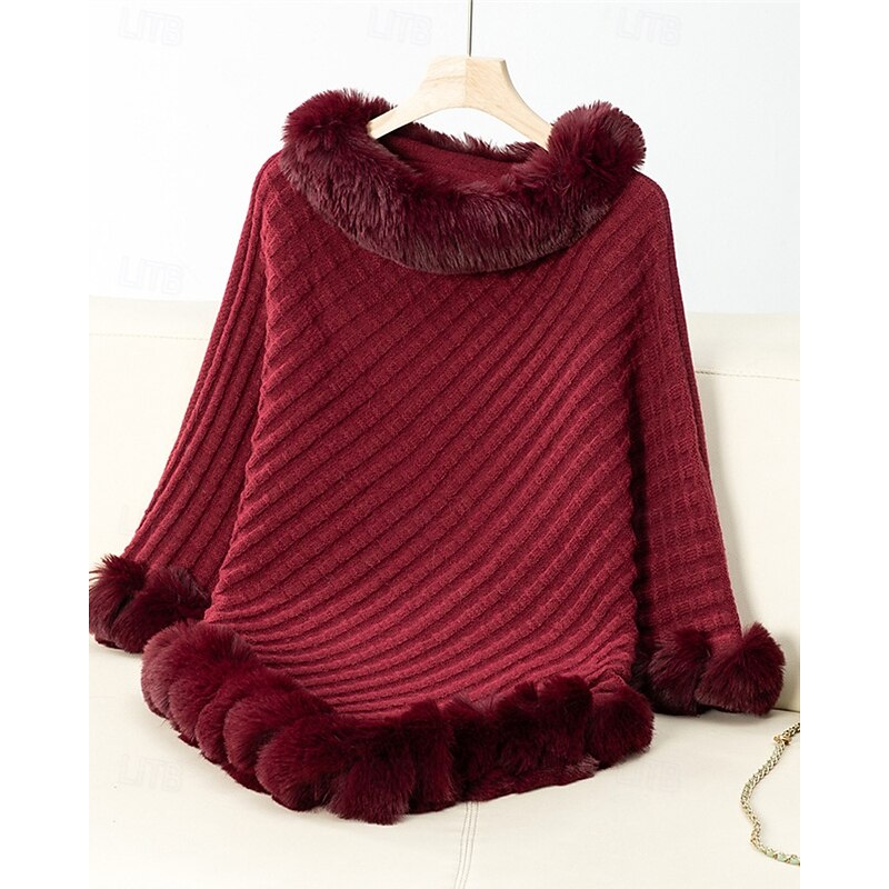 HOT ! Women's Sweater Shrug Elegant Fashion Streetwear Solid Color Ribbed Turtleneck Knitted Asymmetric Hem Faux Fur Trim Half Sleeve Regular Tops Knit Outdoor Daily Weekend Wine Red Black Fall Winter