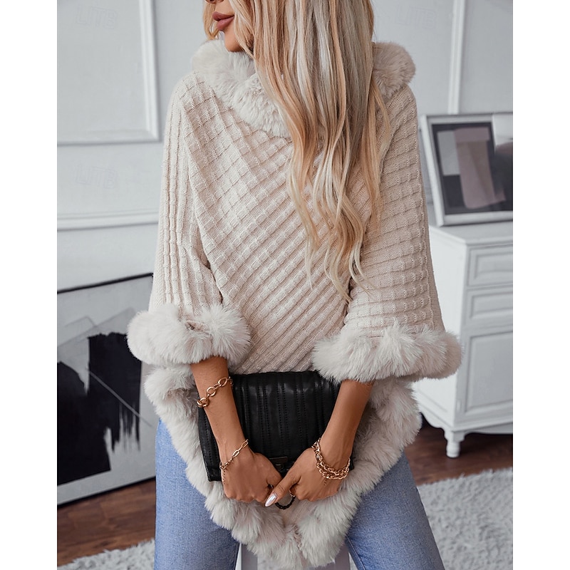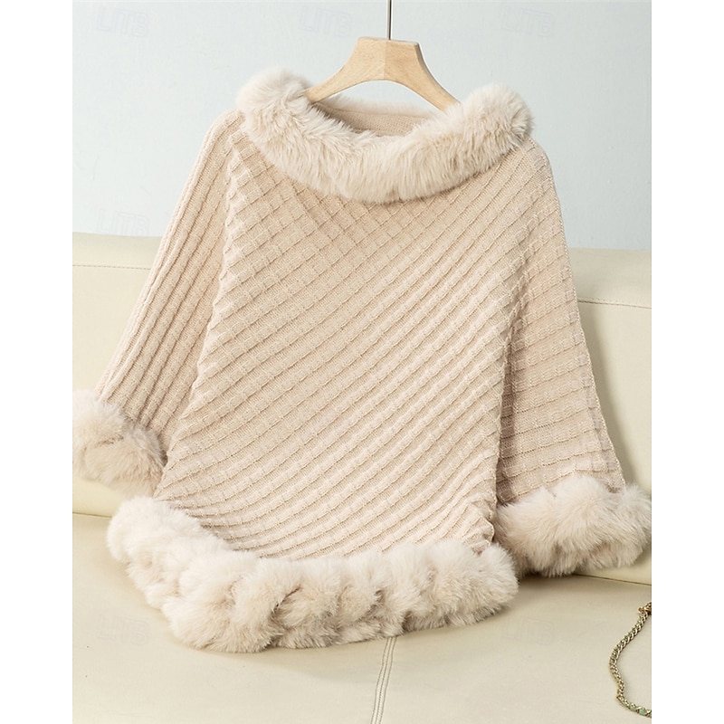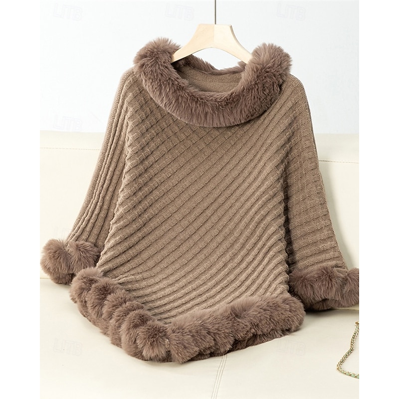 More information about Women's Sweater Shrug Elegant Fashion Streetwear Solid Color Ribbed Turtleneck Knitted Asymmetric Hem Faux Fur Trim Half Sleeve Regular Tops Knit Outdoor Daily Weekend Wine Red Black Fall Winter