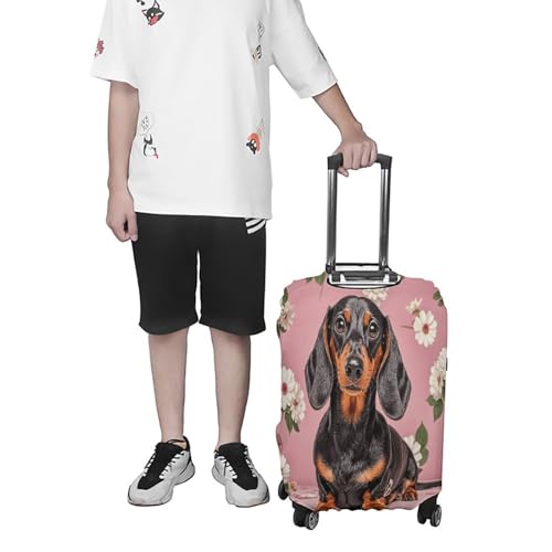 HOT ! Dachshund Florals Travel Luggage Cover Washable Anti-scratch Suitcase Protector Dustproof Protective Cover Case for Wheeled Luggage Fits 19-32 Inch Luggage