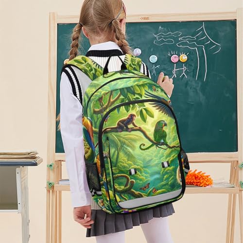 Kids Backpack for Girls Boys, 17 Inch Large Elementary School Backpack for Boys, 6-12 Y, Tropical Animals Green 1