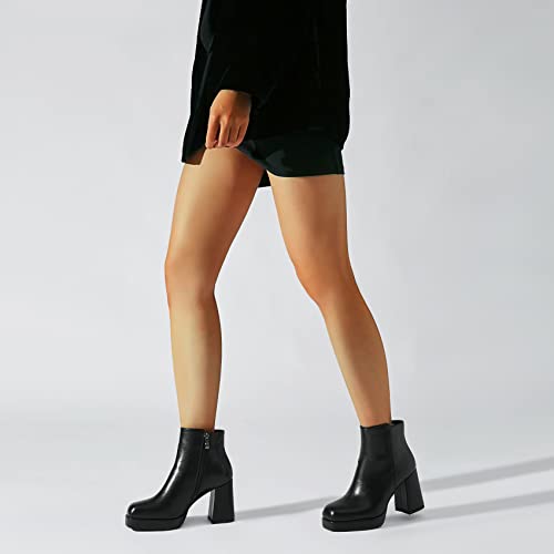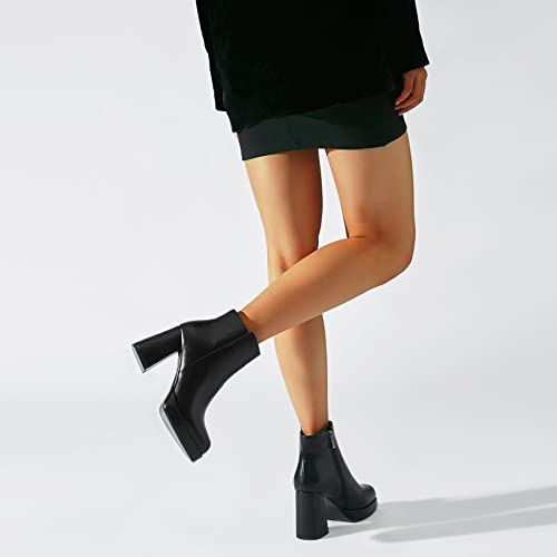 • [Closure Type]: Platform chunky heel ankle boots with side zip-up easy to pull on and take off, without any hassle.Shoes fit well comfortable and beautiful, wear it you will be the most dazzling at any time.