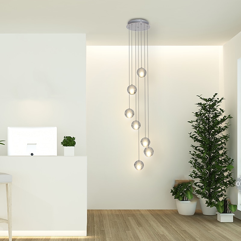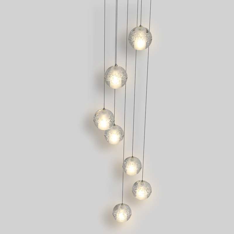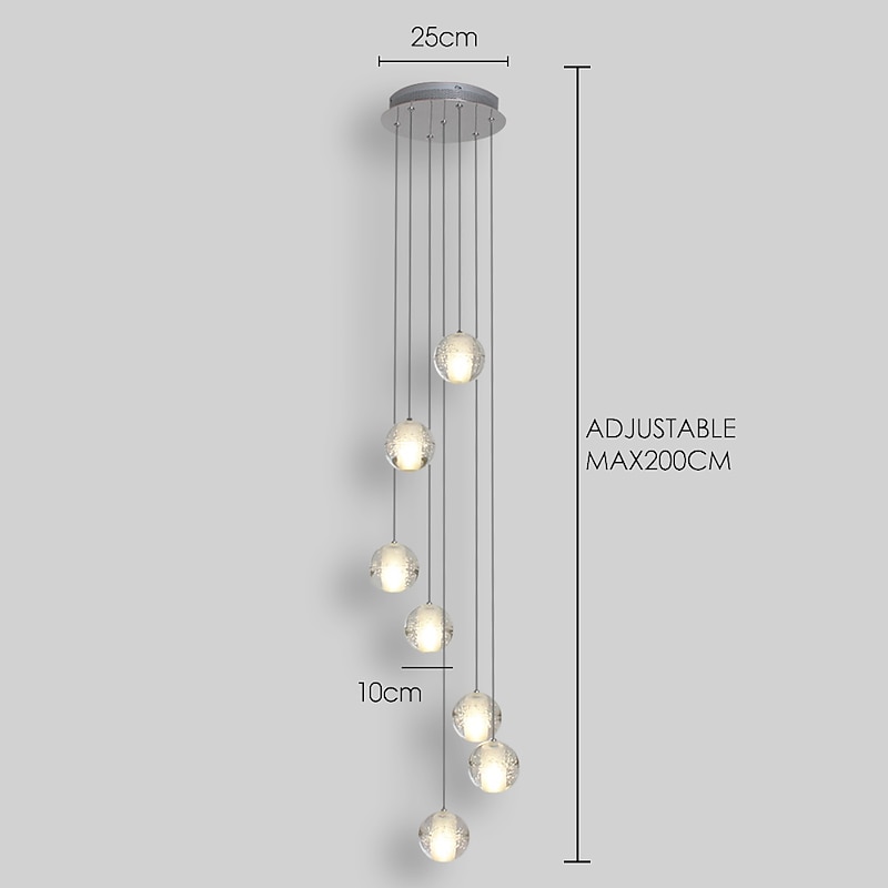 7-Light 10(4") Crystal LED Pendant Light Spherical Design Metal Cluster Chrome Modern Contemporary for Dining Room 90-240V 13