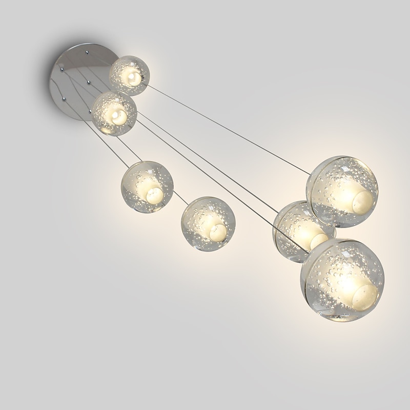 7-Light 10(4") Crystal LED Pendant Light Spherical Design Metal Cluster Chrome Modern Contemporary for Dining Room 90-240V 6
